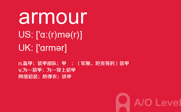 a-level的成绩分为a、b、c、d、e、u六个等级,a为最优,e为通过,u为不及格。如果学生对某门课的成绩不满意,可以选择重考,最终成绩以最好的一次为准。那么a-level考试想要取得a-level高分大家需要做到哪些呢?a/o-level考试网给大家带来的很多a-level考试经验,alevel考试技巧等等,想要考好a-level考试,不仅要知道这些,对于关于a-level考试的所有资讯都需要了解,最重点的是a-level词汇量的积累,今天a/o-level考试网就给大家带来的a-level的考试单词armour的全面解析。如果您想了解a水准考试难度,a水准简单吗,为什么要考alevel课程,英国alevel课程等关于a-level考试的相关资讯,请继续浏览并关注课窝a/o-level考试网。