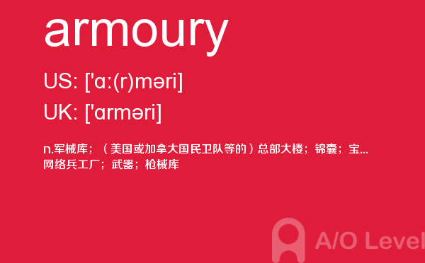英国a-level入学考试的机会真的很少,每年就5-6月和10-11月两场考试。所以千万别因为不必要的原因,影响了a-level入学考试。为了让大家更好的在英国留学,a/o-level考试网会为大家带来a-level考试相关的资讯,一起来看看a/o-level考试网今天带来的词汇armoury的解析。如果您想了解alevel写作时间,alevel奖学金,alevel考试大纲,a水准考试时间等关于a-level考试的相关资讯,请继续浏览并关注课窝a/o-level考试网。