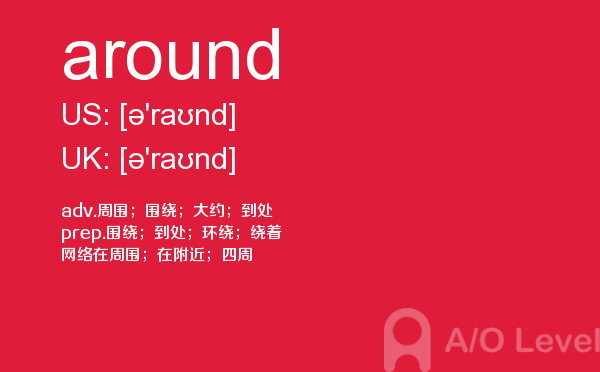 a-level课程适用于年龄在15—18之间,初中毕业以上的在校中学生或具有同等学历的职高生,通常国内a-level学校招收的是高二毕业的学生,并要求参加相关的入学考试,由于a-level课程包括教学及试卷习题等都是英文形式出现,所以这要求学生有较高的英文水平。对于a-level考试适用对象有初步了解之后,下面alevel考试网给大家带来的alevel考试中你需要重点记住的单词around的详细介绍。如果您想了解alevel词汇量测试,alevel课程设置,alevel考试在中国,alevel数学评分标准等关于a-level考试的相关资讯,请继续浏览并关注课窝a/o-level考试网。