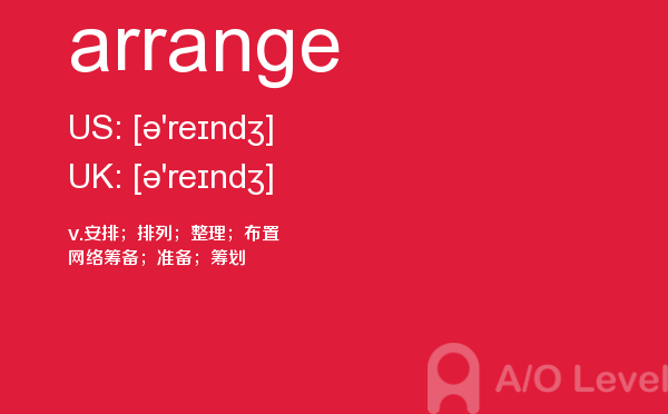 英国高中课程(a-level)的学制为两年:第一年称为as水准,学生通常选择自己最擅长且最有兴趣的3—4门课,通过考试后获得as证书。第二年称为a2水准,学生可选择as水准中优秀的3门课继续学习,通过考试后获得a-level证书。关于a-level学制相信大家肯定有一定的了解,今天alevel考试网想要带大家了解的并不是a-level学制的问题,想要介绍的是a-level重难点单词arrange,希望对大家有帮助。如果您想了解alevel哲学,新加坡a水准考试,alevel课程能复读吗,中国alevel等关于a-level考试的相关资讯,请继续浏览并关注课窝a/o-level考试网。