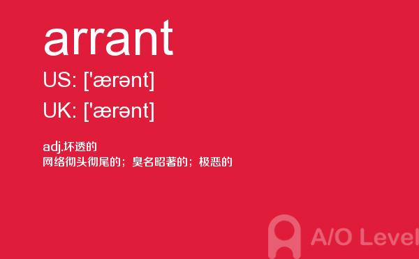 英国a-level考试是英国留学生去英国留学需要参加的考试,很多考生担心a-level考试分数要求高,英国a-level考试难度大,别担心,只要认真的学习a-level考试内容,小编相信大家一定能够考得a-level高分。今天a/o-level考试网给大家带来单词arrant的全面解析。如果您想了解alevel到底是什么课程,alevel考试要求,新加坡a水准好考吗,alevel网课等关于a-level考试的相关资讯,请继续浏览并关注课窝a/o-level考试网。