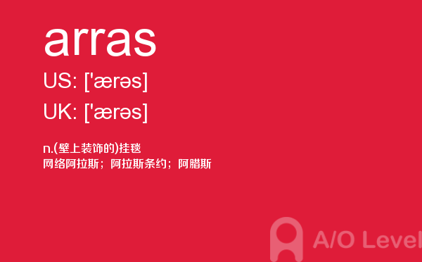 a-level课程证书被几乎所有英语授课的大学作为招收新生的入学标准。 在中国开设a-level课程旨在为中国学生提供进入国外大学的有效途径,具体目标为:培养在国内初高中成绩优秀的学生进入世界顶尖大学;培养在国内初高中成绩中等的学生进入世界一流大学;培养在国内初高中成绩一般的学生考取适合自己的大学。今天alevel考试网小编给大家详细解析a-level考试单词arras。如果您想了解alevel考试日期,alevel物理,alevel历年考试,英国alevel高中等关于a-level考试的相关资讯,请继续浏览并关注课窝a/o-level考试网。