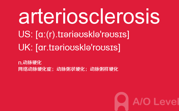 英国高中课程(a-level)的学制为两年:第一年称为as水准,学生通常选择自己最擅长且最有兴趣的3—4门课,通过考试后获得as证书。第二年称为a2水准,学生可选择as水准中优秀的3门课继续学习,通过考试后获得a-level证书。关于a-level学制相信大家肯定有一定的了解,今天alevel考试网想要带大家了解的并不是a-level学制的问题,想要介绍的是a-level重难点单词arteriosclerosis,希望对大家有帮助。如果您想了解alevel课程选课,考alevel多少钱,上海alevel辅导哪家好,alevel经济考试原题等关于a-level考试的相关资讯,请继续浏览并关注课窝a/o-level考试网。