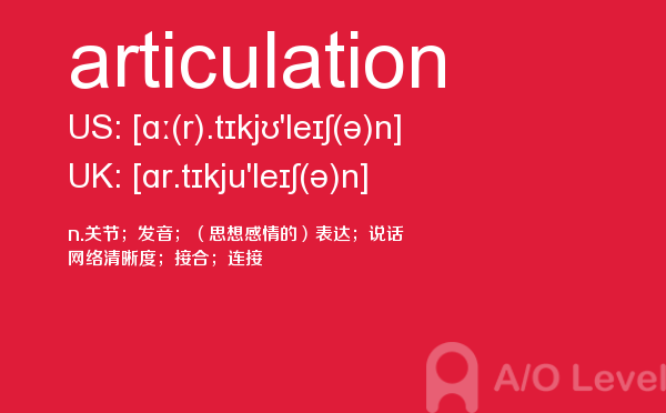 今天课窝a/o-level考试网小编给大家带来alevel考试至关重要的内容a-level单词articulation的详细介绍。希望大家能够认真的阅读,在备考a-level中会用到,关于a-level考试时间,alevel考试费用等相关问题,可以关注课窝a/o-level考试网。如果您想了解alevel难度,alevel课程有年龄限制,alevel考试时间,alevel课程价格等关于a-level考试的相关资讯,请继续浏览并关注课窝a/o-level考试网。