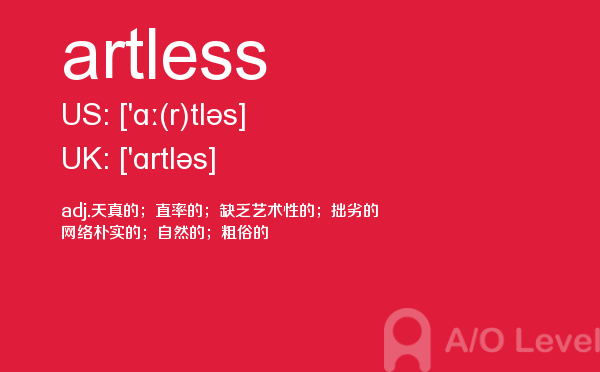 英国留学对于留学成绩的比拼越来越激烈,申请英国院校留学的一大指标a-level考试分数要求也水涨船高.虽然成绩只是申请的一部分,但不得不说,好看的英国a-level成绩是学生是否优秀的证据。放松一下跟着a/o-level考试网来学习一下a-level考试词汇artless的应用。如果您想了解高中alevel考试,alevel物理常备词汇,alevel非全日制培训,alevel是毕业考试吗等关于a-level考试的相关资讯,请继续浏览并关注课窝a/o-level考试网。