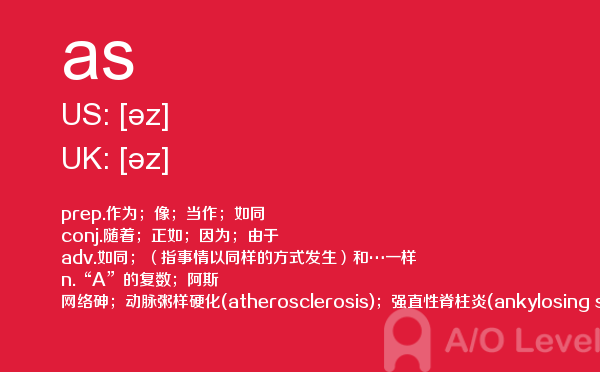 英国a-level入学考试的机会真的很少,每年就5-6月和10-11月两场考试。所以千万别因为不必要的原因,影响了a-level入学考试。为了让大家更好的在英国留学,a/o-level考试网会为大家带来a-level考试相关的资讯,一起来看看a/o-level考试网今天带来的词汇as的解析。如果您想了解alevel网上报名,alevel国际课程介绍,新加坡a水准学费,alevel范文等关于a-level考试的相关资讯,请继续浏览并关注课窝a/o-level考试网。