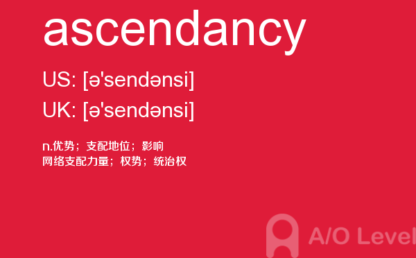 现在很多人来咨询a-level考试录取率,英国a-level考试题库的家长也依然不减,而考生们则更关心a-level教材以及a-level考试培训课程是什么样的。a/o-level考试网都会解答您。今天小编带来a/o-level考试网的内容是关于a-level词汇的ascendancy单词的详细介绍。如果您想了解牛津大学alevel,上海alevel国际学校,alevel数学评分标准,alevel考试大纲等关于a-level考试的相关资讯,请继续浏览并关注课窝a/o-level考试网。