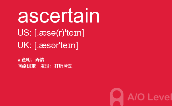 现在申请英国院校的中国孩子非常多,几乎每一个学生都在为一种叫做英国a-level的考试而努力着。a/o-level考试网老师为大家解析a-level考试重难点单词ascertain,大家认真学习,会有帮助。如果您想了解alevel培训价格,中国alevel成绩申请国外名校,alevel中心哪里有,alevel作文思路等关于a-level考试的相关资讯,请继续浏览并关注课窝a/o-level考试网。