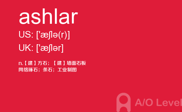 a-level的成绩分为a、b、c、d、e、u六个等级,a为最优,e为通过,u为不及格。如果学生对某门课的成绩不满意,可以选择重考,最终成绩以最好的一次为准。那么a-level考试想要取得a-level高分大家需要做到哪些呢?a/o-level考试网给大家带来的很多a-level考试经验,alevel考试技巧等等,想要考好a-level考试,不仅要知道这些,对于关于a-level考试的所有资讯都需要了解,最重点的是a-level词汇量的积累,今天a/o-level考试网就给大家带来的a-level的考试单词ashlar的全面解析。如果您想了解新加坡a水准优势,国内alevel培训班,alevel学校名单,alevel真题网站等关于a-level考试的相关资讯,请继续浏览并关注课窝a/o-level考试网。