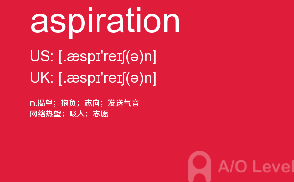 在a-level备考的过程中,想要冲刺到a-level写作的高分,相信大家都应该会知道,除了需要掌握a-level写作的一些技巧之外,优化文章中的词汇和句型也是冲刺高分的关键所在。也就是说,只有充分掌握了语法知识,才能让我们的的文章更为丰富形象。除了a-level写作,在a-level其他方面同学们也需要了解,下面课窝a/o-level考试网小编给大家带来a-level单词aspiration的介绍。如果您想了解alevel考试的考生年龄上限是多少,alevel国际学校,alevel剑桥,alevel物理讲义等关于a-level考试的相关资讯,请继续浏览并关注课窝a/o-level考试网。