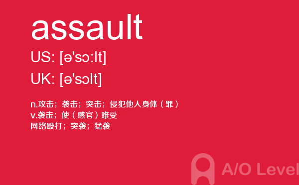 众多周知的英国a-level入学考试是进入英国院校的必经之路,所以我们自然不能小看,建议同学们能够加强a-level考试真题的练习,提前明确英国a-level考试报名的具体信息。为了提高考生们的英国a-level考试成绩,a/o-level考试网小编会每天给大家更新a-level留学资讯和alevel考试资讯,今天带来的是关于a-level考试词汇的单词全解,下面带你学习assault的用法。如果您想了解新加坡a水准报名费用,国内alevel学校,alevel澳洲留学申请,alevel考试时刻等关于a-level考试的相关资讯,请继续浏览并关注课窝a/o-level考试网。