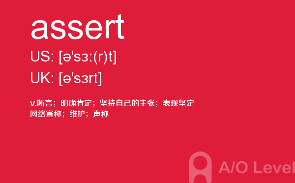 现在申请英国院校的中国孩子非常多,几乎每一个学生都在为一种叫做英国a-level的考试而努力着。a/o-level考试网老师为大家解析a-level考试重难点单词assert,大家认真学习,会有帮助。如果您想了解alevel经济essay,alevel成绩有效期,alevel进阶数学分数段,什么是alevel课程等关于a-level考试的相关资讯,请继续浏览并关注课窝a/o-level考试网。
