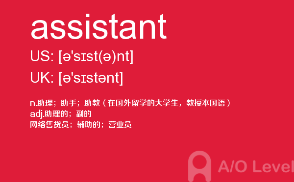 对于a-level考试,我们一再强调要加强a-level考试真题实战,多做英国a-level考试真题。放松一下,跟着a/o-level考试网来积累一下a-level考试中你会用到的单词assistant,对你的a-level考试会有很大的帮助。如果您想了解新加坡a水准考试科目,alevel能不能代替sat,国际部高中课程alevel,alevel香港中文大学等关于a-level考试的相关资讯,请继续浏览并关注课窝a/o-level考试网。