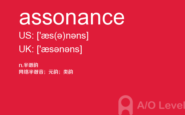 随著学生的素质提升,各大a-level课程培训班的师资和英国a-level题库也不断的完善,近年来学生考出来a-level分数也不断上涨。但是去英国留学,对英国留学资讯和英国的a-level考试资讯都是需要了解的,下面一起跟着a/o-level考试网来看看a-level词汇之assonance的详细介绍。如果您想了解爱德思alevel中国官网,alevel经济教材是哪个,中国alevel,alevel网课等关于a-level考试的相关资讯,请继续浏览并关注课窝a/o-level考试网。