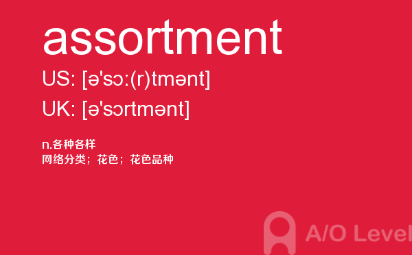英国留学考试a-level考试考什么?a-level考试题型一定要注意积累和总结。课窝a/o-level考试网小编每天会给大家带来a-level考试的相关资讯,今天带来a-level单词assortment的解析,希望大家认真的积累a-level考试词汇。如果您想了解alevel澳洲,国际部高中课程alevel,alevel物理测试题,alevel基础数学词汇等关于a-level考试的相关资讯,请继续浏览并关注课窝a/o-level考试网。