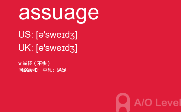 课窝a/o-level考试网上提供了许多信息可以供考生们参考,比如考生需要在此网站报名,打印准考证,或者搜寻与英国a-level考试内容相关的资料等等。考生如果想在短时间内,迅速掌握a-level考试资讯,就需要合理运用此网站的信息。今天带来的是a-level考试词汇之assuage的详细介绍。如果您想了解alevel词汇书,alevel数学内容,alevel物理复习,alevel中文口语考试等关于a-level考试的相关资讯,请继续浏览并关注课窝a/o-level考试网。