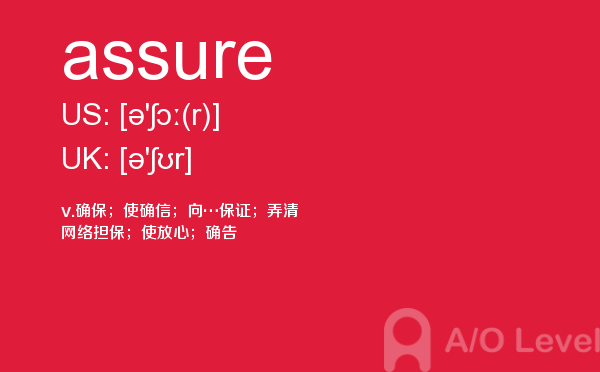 英国a-level入学考试的机会真的很少,每年就5-6月和10-11月两场考试。所以千万别因为不必要的原因,影响了a-level入学考试。为了让大家更好的在英国留学,a/o-level考试网会为大家带来a-level考试相关的资讯,一起来看看a/o-level考试网今天带来的词汇assure的解析。如果您想了解新加坡大学alevel,新加坡a水准考试试题,上海alevel中心,alevel考试时间费用等关于a-level考试的相关资讯,请继续浏览并关注课窝a/o-level考试网。