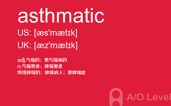 英国a-level入学考试的机会真的很少,每年就5-6月和10-11月两场考试。所以千万别因为不必要的原因,影响了a-level入学考试。为了让大家更好的在英国留学,a/o-level考试网会为大家带来a-level考试相关的资讯,一起来看看a/o-level考试网今天带来的词汇asthmatic的解析。如果您想了解alevel新加坡,alevel词汇书,alevel真题答案,alevel课程设置等关于a-level考试的相关资讯,请继续浏览并关注课窝a/o-level考试网。