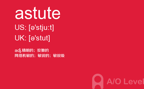 目前,a/olevel逐渐为人所熟知,很多学生都会主动了解alevel考试流程。同时也会抱怨a-level英语题比较难,任务重。那现在我们就放松一下,跟着a/o-level考试网小编来看看a-level考试中要积累的单词astute,认真的学习积累。如果您想了解alevel考场地址,alevel中文考试真题,alevel物理常备词汇,alevel辅导等关于a-level考试的相关资讯,请继续浏览并关注课窝a/o-level考试网。