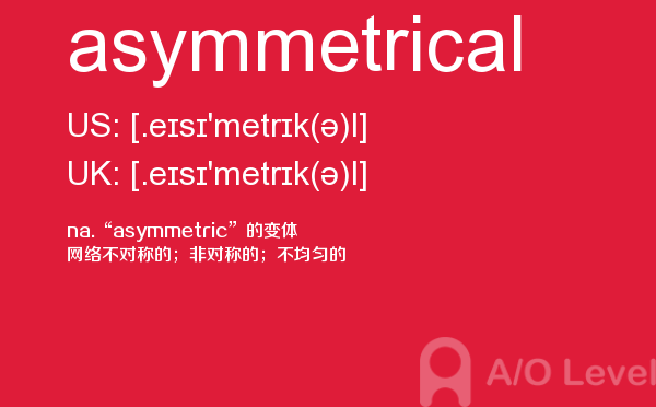 英国a-level考试是英国留学生去英国留学需要参加的考试,很多考生担心a-level考试分数要求高,英国a-level考试难度大,别担心,只要认真的学习a-level考试内容,小编相信大家一定能够考得a-level高分。今天a/o-level考试网给大家带来单词asymmetrical的全面解析。如果您想了解alevel数学公式表,alevel申请,alevel学校,英国alevel学校排名等关于a-level考试的相关资讯,请继续浏览并关注课窝a/o-level考试网。