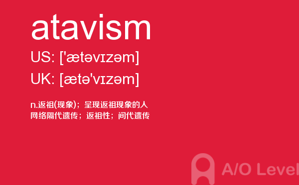 现在申请英国院校的中国孩子非常多,几乎每一个学生都在为一种叫做英国a-level的考试而努力着。a/o-level考试网老师为大家解析a-level考试重难点单词atavism,大家认真学习,会有帮助。如果您想了解alevel经济essay,alevel成绩有效期,alevel进阶数学分数段,什么是alevel课程等关于a-level考试的相关资讯,请继续浏览并关注课窝a/o-level考试网。