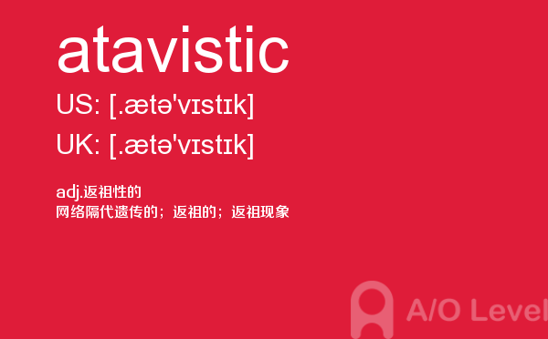 英国高中课程(a-level)的学制为两年:第一年称为as水准,学生通常选择自己最擅长且最有兴趣的3—4门课,通过考试后获得as证书。第二年称为a2水准,学生可选择as水准中优秀的3门课继续学习,通过考试后获得a-level证书。关于a-level学制相信大家肯定有一定的了解,今天alevel考试网想要带大家了解的并不是a-level学制的问题,想要介绍的是a-level重难点单词atavistic,希望对大家有帮助。如果您想了解alevel物理知识,alevel自学选什么,新加坡国alevel,alevel高数等关于a-level考试的相关资讯,请继续浏览并关注课窝a/o-level考试网。