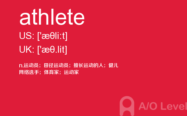 英国a-level考试报名费很好解决,那怎样才能达到a-level考试词汇量要求呢?别再纠结于a-level考试分数要求了,今天我们来一起看看a/o-level考试网今天带给你的a-level单词athlete的讲解。如果您想了解alevel考试试题,香港中文大学alevel,香港大学alevel成绩申请,alevel经济笔记等关于a-level考试的相关资讯,请继续浏览并关注课窝a/o-level考试网。