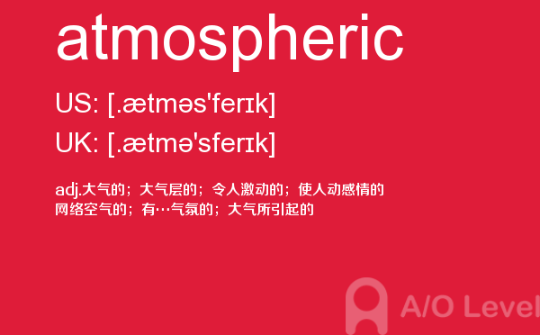 英国a-level考试是英国留学生去英国留学需要参加的考试,很多考生担心a-level考试分数要求高,英国a-level考试难度大,别担心,只要认真的学习a-level考试内容,小编相信大家一定能够考得a-level高分。今天a/o-level考试网给大家带来单词atmospheric的全面解析。如果您想了解alevel化学课程教案,中国alevel就读人数,alevel物理讲义,alevel考试形式等关于a-level考试的相关资讯,请继续浏览并关注课窝a/o-level考试网。