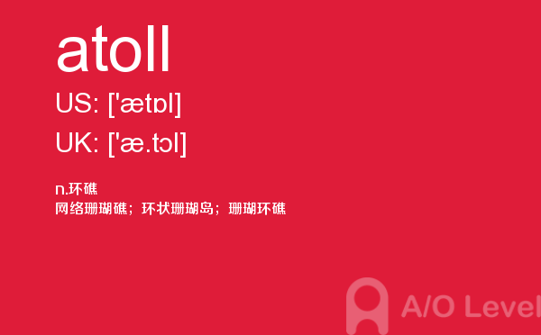 在a-level备考的过程中,想要冲刺到a-level写作的高分,相信大家都应该会知道,除了需要掌握a-level写作的一些技巧之外,优化文章中的词汇和句型也是冲刺高分的关键所在。也就是说,只有充分掌握了语法知识,才能让我们的的文章更为丰富形象。除了a-level写作,在a-level其他方面同学们也需要了解,下面课窝a/o-level考试网小编给大家带来a-level单词atoll的介绍。如果您想了解alevel考场,alevel考试价格,alevel经济培训班,怎么去英国读alevel课程等关于a-level考试的相关资讯,请继续浏览并关注课窝a/o-level考试网。
