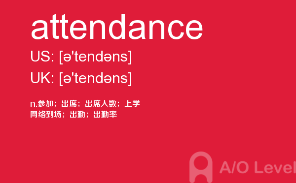 课窝a/o-level考试网上提供了许多信息可以供考生们参考,比如考生需要在此网站报名,打印准考证,或者搜寻与英国a-level考试内容相关的资料等等。考生如果想在短时间内,迅速掌握a-level考试资讯,就需要合理运用此网站的信息。今天带来的是a-level考试词汇之attendance的详细介绍。如果您想了解国内学alevel要多少钱,新加坡的alevel难度,alevel单词,alevel可以自学吗等关于a-level考试的相关资讯,请继续浏览并关注课窝a/o-level考试网。