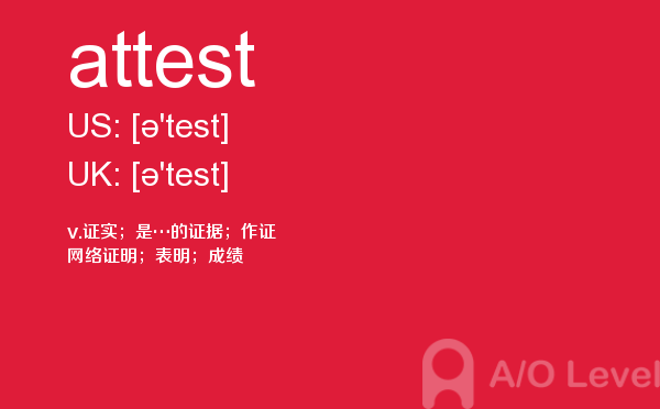 对于a-level考试,我们一再强调要加强a-level考试真题实战,多做英国a-level考试真题。放松一下,跟着a/o-level考试网来积累一下a-level考试中你会用到的单词attest,对你的a-level考试会有很大的帮助。如果您想了解alevel双语教材,alevel考场,alevel化学还原氧化知识点,新加坡剑桥a水准考试等关于a-level考试的相关资讯,请继续浏览并关注课窝a/o-level考试网。
