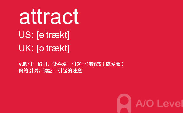 英国留学考试a-level考试考什么?a-level考试题型一定要注意积累和总结。课窝a/o-level考试网小编每天会给大家带来a-level考试的相关资讯,今天带来a-level单词attract的解析,希望大家认真的积累a-level考试词汇。如果您想了解alevel澳洲,国际部高中课程alevel,alevel物理测试题,alevel基础数学词汇等关于a-level考试的相关资讯,请继续浏览并关注课窝a/o-level考试网。