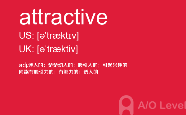 英国、加拿大、爱尔兰、澳大利亚、新西兰、新加坡等英语国家没有统一的大学入学标准,虽然它们都认可a-level证书,但是各所大学、各个专业对学生学过哪几门a-level课程以及成绩都有不同的要求。所以怎样选择课程并没有一个唯一的答案。对于如何选课的问题要根据具体情况而定。这些在你的a-level考试中都不是重要的,重要的是a-level成绩,a-level成绩取决于a-level词汇量,那么今天小编给大家带来a-level考试重点词汇attractive的全面解析。如果您想了解alevel考试卷,alevel课程每科评分,a水准考试时间,美国有alevel课程吗等关于a-level考试的相关资讯,请继续浏览并关注课窝a/o-level考试网。