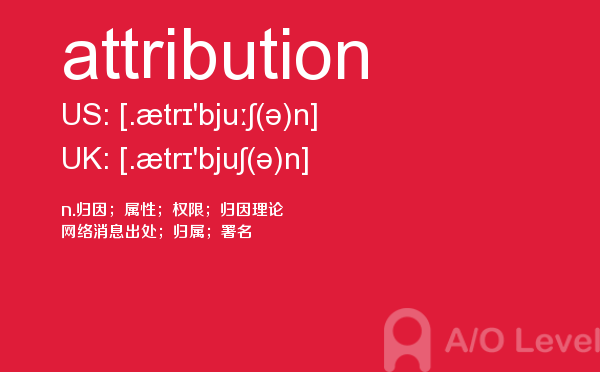 虽然英国a-level院校招生官常把“成绩不是决定录取与否的唯一因素”挂在嘴边,但不得不承认,a-level分数是学生优秀与否的有力证据,取得a-level成绩高分是肯定是优先考虑的。放松一下,先跟着a/o-level考试网来看看今天小编带来的是a-level单词attribution的介绍。如果您想了解a水准物理专业术语,alevel中文,alevel词汇表,alevel经济学真题等关于a-level考试的相关资讯,请继续浏览并关注课窝a/o-level考试网。