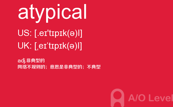 英国高中课程(a-level)的学制为两年:第一年称为as水准,学生通常选择自己最擅长且最有兴趣的3—4门课,通过考试后获得as证书。第二年称为a2水准,学生可选择as水准中优秀的3门课继续学习,通过考试后获得a-level证书。关于a-level学制相信大家肯定有一定的了解,今天alevel考试网想要带大家了解的并不是a-level学制的问题,想要介绍的是a-level重难点单词atypical,希望对大家有帮助。如果您想了解了解alevel辅导,alevel澳洲,爱德思alevel真题,alevel物理等关于a-level考试的相关资讯,请继续浏览并关注课窝a/o-level考试网。