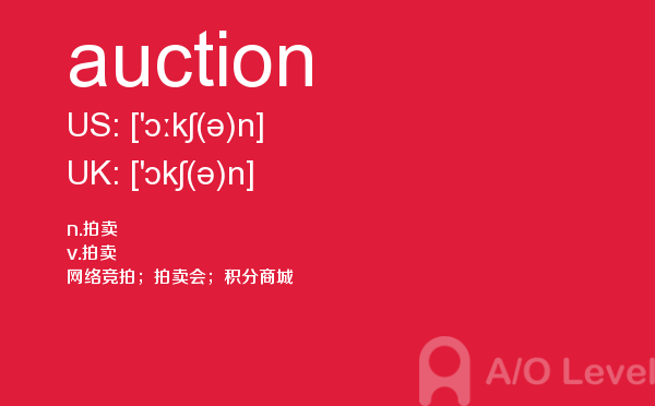英国、加拿大、爱尔兰、澳大利亚、新西兰、新加坡等英语国家没有统一的大学入学标准,虽然它们都认可a-level证书,但是各所大学、各个专业对学生学过哪几门a-level课程以及成绩都有不同的要求。所以怎样选择课程并没有一个唯一的答案。对于如何选课的问题要根据具体情况而定。这些在你的a-level考试中都不是重要的,重要的是a-level成绩,a-level成绩取决于a-level词汇量,那么今天小编给大家带来a-level考试重点词汇auction的全面解析。如果您想了解新加坡国alevel,alevel课程设置,国际学校alevel宣传片,中国有a水准培训班吗等关于a-level考试的相关资讯,请继续浏览并关注课窝a/o-level考试网。