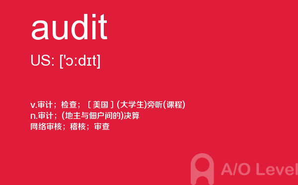 英国a-level考试报名费很好解决,那怎样才能达到a-level考试词汇量要求呢?别再纠结于a-level考试分数要求了,今天我们来一起看看a/o-level考试网今天带给你的a-level单词audit的讲解。如果您想了解alevel经济学知识点,新加坡o水准a1多少分,alevel课程比较,alevel数学公式表等关于a-level考试的相关资讯,请继续浏览并关注课窝a/o-level考试网。