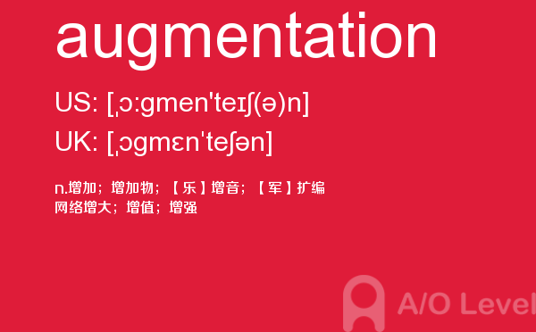 你知道考上a-level考试如何报名吗?最近很多人询问英国a-level考试有多难?到底要不要参加a-level考试培训?抛弃这些,a/o-level考试网老师告诉你,a-level单词最重要,今天带你学习augmentation怎么用,希望你认真的学习。如果您想了解alevel澳洲,国际部高中课程alevel,alevel物理测试题,alevel基础数学词汇等关于a-level考试的相关资讯,请继续浏览并关注课窝a/o-level考试网。