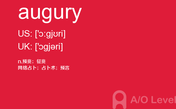 英国高中课程(a-level)的学制为两年:第一年称为as水准,学生通常选择自己最擅长且最有兴趣的3—4门课,通过考试后获得as证书。第二年称为a2水准,学生可选择as水准中优秀的3门课继续学习,通过考试后获得a-level证书。关于a-level学制相信大家肯定有一定的了解,今天alevel考试网想要带大家了解的并不是a-level学制的问题,想要介绍的是a-level重难点单词augury,希望对大家有帮助。如果您想了解alevel课程选课,考alevel多少钱,上海alevel辅导哪家好,alevel经济考试原题等关于a-level考试的相关资讯,请继续浏览并关注课窝a/o-level考试网。