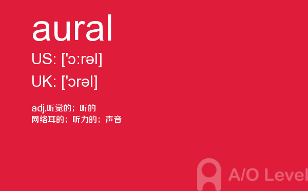 a-level课程适用于年龄在15—18之间,初中毕业以上的在校中学生或具有同等学历的职高生,通常国内a-level学校招收的是高二毕业的学生,并要求参加相关的入学考试,由于a-level课程包括教学及试卷习题等都是英文形式出现,所以这要求学生有较高的英文水平。对于a-level考试适用对象有初步了解之后,下面alevel考试网给大家带来的alevel考试中你需要重点记住的单词aural的详细介绍。如果您想了解alevel成绩申请国外名校,英国alevel好学吗,a水准考试难度,alevel教材代购等关于a-level考试的相关资讯,请继续浏览并关注课窝a/o-level考试网。