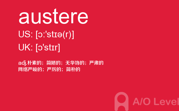 随着英国留学申请竞争的白热化,a-level成绩在学生个人简历中扮演的“入场券”角色,变得越来越重要。然而,在你参加a-level考试培训班前,你首先要对a-level考试有着一定的了解,一起跟着a/o-level考试网来看看小编今天带来a-level单词austere的详细介绍。如果您想了解alevel入学考试,alevel网校,alevel中文,alevel物理专业术语等关于a-level考试的相关资讯,请继续浏览并关注课窝a/o-level考试网。