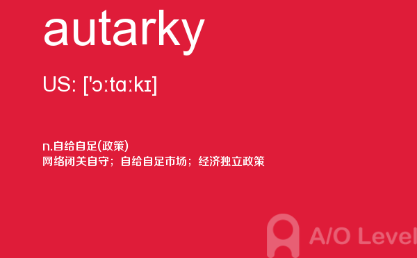 目前,a/olevel逐渐为人所熟知,很多学生都会主动了解alevel考试流程。同时也会抱怨a-level英语题比较难,任务重。那现在我们就放松一下,跟着a/o-level考试网小编来看看a-level考试中要积累的单词autarky,认真的学习积累。如果您想了解alevel考场地址,alevel中文考试真题,alevel物理常备词汇,alevel辅导等关于a-level考试的相关资讯,请继续浏览并关注课窝a/o-level考试网。