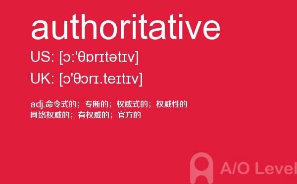 随着英国留学申请竞争的白热化,a-level成绩在学生个人简历中扮演的“入场券”角色,变得越来越重要。然而,在你参加a-level考试培训班前,你首先要对a-level考试有着一定的了解,一起跟着a/o-level考试网来看看小编今天带来a-level单词authoritative的详细介绍。如果您想了解alevel真题下载,alevel历史,alevel授权,alevel经济学课本等关于a-level考试的相关资讯,请继续浏览并关注课窝a/o-level考试网。