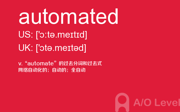 英国、加拿大、爱尔兰、澳大利亚、新西兰、新加坡等英语国家没有统一的大学入学标准,虽然它们都认可a-level证书,但是各所大学、各个专业对学生学过哪几门a-level课程以及成绩都有不同的要求。所以怎样选择课程并没有一个唯一的答案。对于如何选课的问题要根据具体情况而定。这些在你的a-level考试中都不是重要的,重要的是a-level成绩,a-level成绩取决于a-level词汇量,那么今天小编给大家带来a-level考试重点词汇automated的全面解析。如果您想了解英国中学排名alevel,中国alevel人数,alevel国内培训,英国alevel学校排名等关于a-level考试的相关资讯,请继续浏览并关注课窝a/o-level考试网。