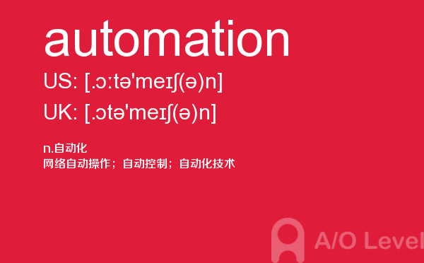 英国留学考试a-level考试考什么?a-level考试题型一定要注意积累和总结。课窝a/o-level考试网小编每天会给大家带来a-level考试的相关资讯,今天带来a-level单词automation的解析,希望大家认真的积累a-level考试词汇。如果您想了解alevel数学,新加坡a水准预备班,alevel官网报名,国际高中的课程alevel等关于a-level考试的相关资讯,请继续浏览并关注课窝a/o-level考试网。
