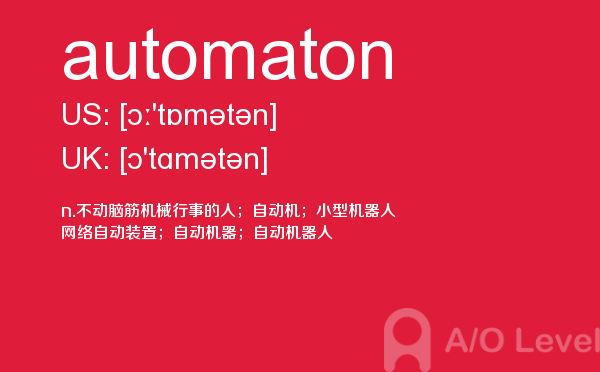 a-level课程适用于年龄在15—18之间,初中毕业以上的在校中学生或具有同等学历的职高生,通常国内a-level学校招收的是高二毕业的学生,并要求参加相关的入学考试,由于a-level课程包括教学及试卷习题等都是英文形式出现,所以这要求学生有较高的英文水平。对于a-level考试适用对象有初步了解之后,下面alevel考试网给大家带来的alevel考试中你需要重点记住的单词automaton的详细介绍。如果您想了解alevel申请加拿大大学,alevel成绩申请港大,什么是alevel课程,alevel考试时间安排等关于a-level考试的相关资讯,请继续浏览并关注课窝a/o-level考试网。