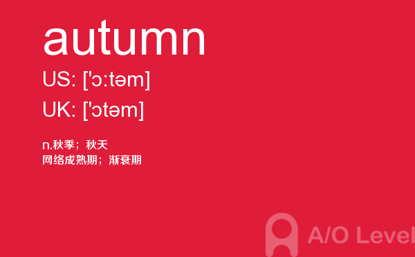 a- level课程一般在中国开设数学、进阶数学(或称高等数学)、物理、计算机学、会计学、商业学、经济学等课程供学生选择。那么关于alevel考生应该选哪些alevel课程呢?以后会给大家详细介绍,今天a/o-level考试网主要给大家全面介绍a-level词汇中的autumn单词。如果您想了解考alevel有必要吗,国内alevel培训,alevel课程培训,alevel美本申请等关于a-level考试的相关资讯,请继续浏览并关注课窝a/o-level考试网。
