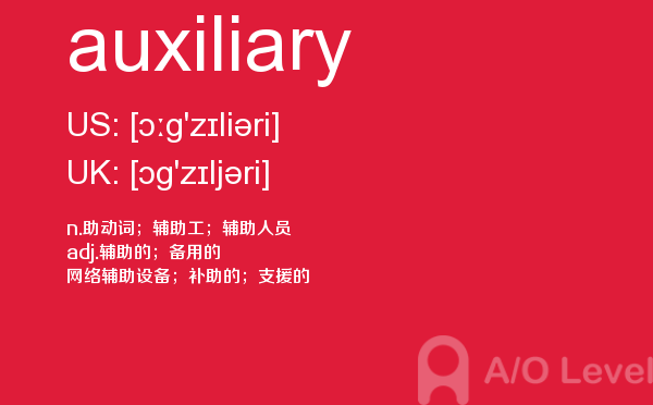 a- level课程一般在中国开设数学、进阶数学(或称高等数学)、物理、计算机学、会计学、商业学、经济学等课程供学生选择。那么关于alevel考生应该选哪些alevel课程呢?以后会给大家详细介绍,今天a/o-level考试网主要给大家全面介绍a-level词汇中的auxiliary单词。如果您想了解新加坡alevel课程,港大alevel申请条件,alevel报名费用,alevel课程的劣势等关于a-level考试的相关资讯,请继续浏览并关注课窝a/o-level考试网。