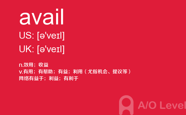 就读于国内学校的学生, 在申请英国学校时需要提交英国a-level考试成绩。很多考生因此英国a-level考试搞得头疼,放松一下,跟着a/o-level考试网来看看英国留学资讯吧!今天课窝a/o-level考试网小编给大家带来a-level考试重点词汇avail的全解,对你肯定有帮助。如果您想了解alevel大学条件,alevel申请,alevel影视表演学什么,alevel网校等关于a-level考试的相关资讯,请继续浏览并关注课窝a/o-level考试网。