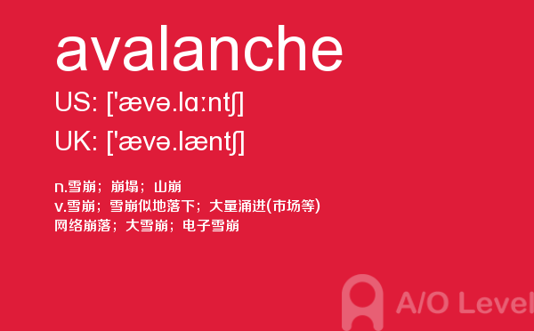 英国以其高质量的教学闻名于世,如果你还在思考a-level考试值不值得考?近几年的英国留学a-level考试的热潮足以证明一切!课窝a/o-level考试网会给大家带来a-level考试真题,a-level考试如何复习?等所有有关的a-level考试资讯。课窝a/o-level考试网今天带来a-level考试中很重要的单词avalanche的详细解析,会对你有帮助。如果您想了解alevel课程的适用范围,alevel国际学校,alevel考试日期,alevel经济学教材目录等关于a-level考试的相关资讯,请继续浏览并关注课窝a/o-level考试网。